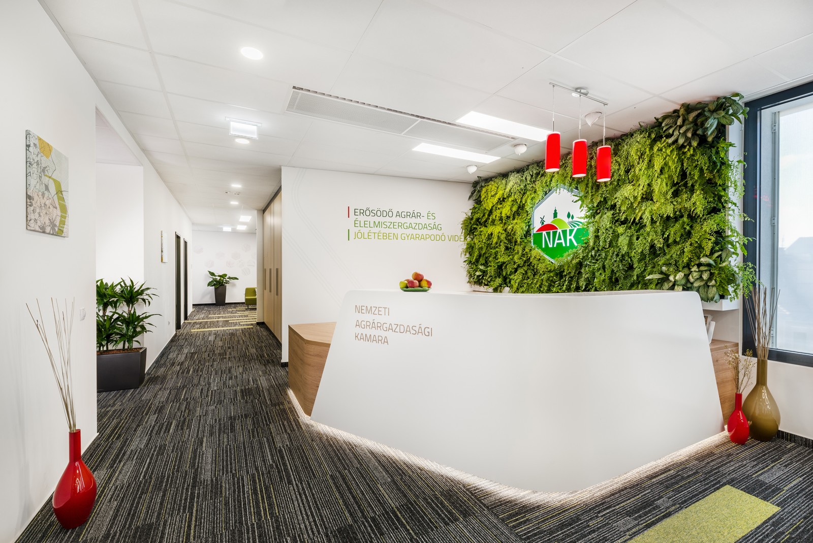 “The Hungarian Chamber of Agriculture (HCA) covers the whole domestic food chain, the agricultural production activity and the field of rural development through its members. As a flexible and professionally qualified public body, the HCA has been working since its foundation to give a new impetus to the Hungarian agri-food economy. In 2018, HCA decided to create a new central office, in which the interior design concept was inspired by the characteristic motifs of the agrarian farm, with the design elements of the cultivated landscape and the life-giving natural environment.”